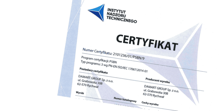 Wszystkie urządzenia projektujemy i produkujemy zgodnie z wymaganiami norm PN-EN 1176 oraz PN-EN 16630, co umożliwia ich bezpieczne użytkowanie w przestrzeni publicznej i odbiór w inwestycjach publicznych. Zgodność naszych urządzeń z obowiązującymi normami potwierdzana jest certyfikacją przeprowadzaną przez niezależną, akredytowaną jednostkę certyfikującą.