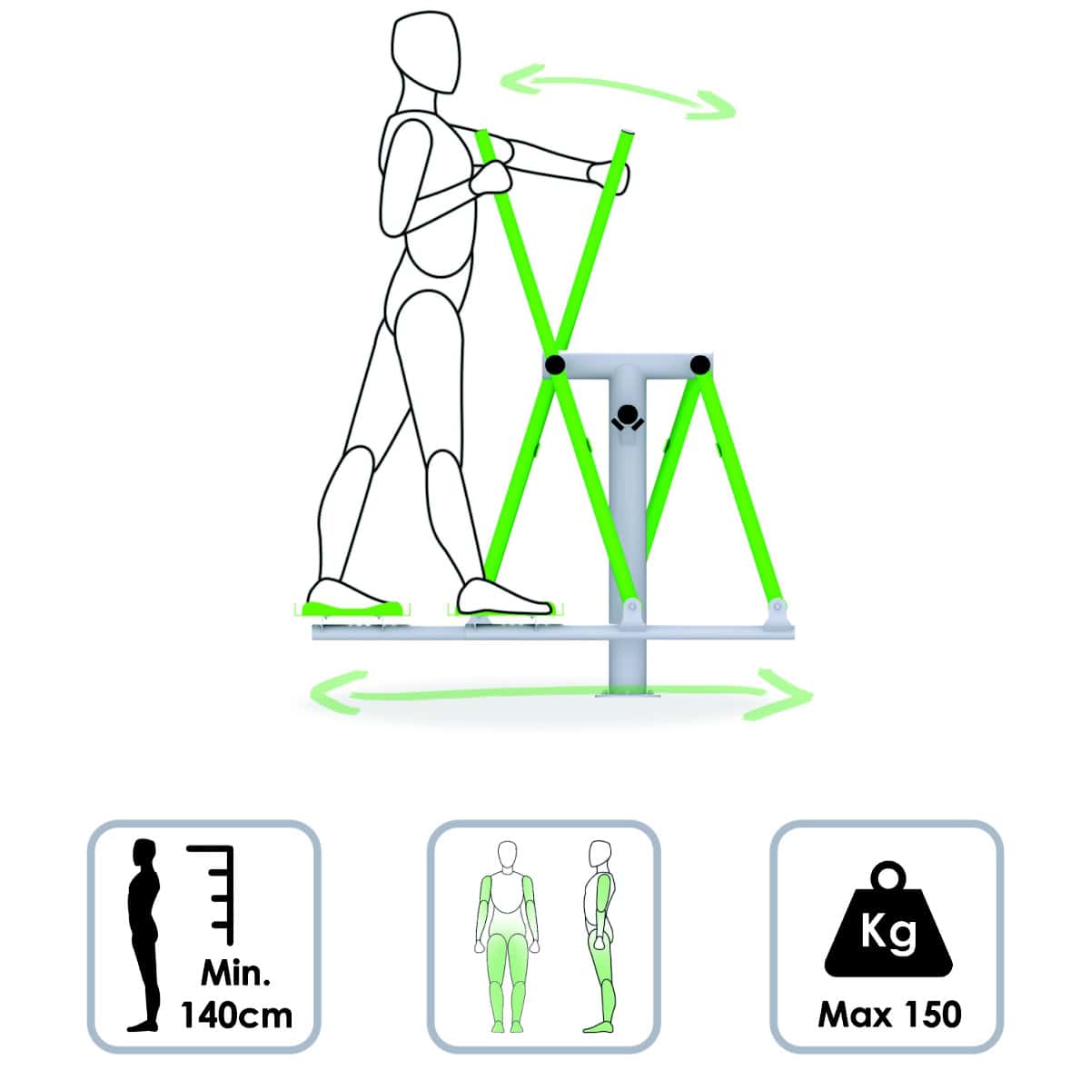 Przyrząd do ćwiczeń NARCIARZ to popularny produkt w siłowniach parkowych. Jego uniwersalność docenią wszyscy użytkownicy, bez względu na wiek. Wykonany jest z materiałów odpornych na wandali i uszkodzenia mechaniczne. Sprawdzi się jako świetna zabawa oraz suchy trening przed sezonem zimowym w górach.