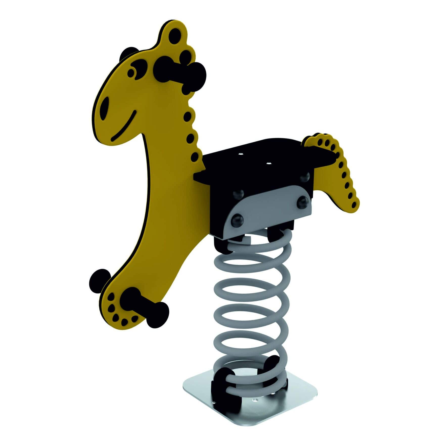 Sprężyna zapewnia przyjemne kołysanie, rozwijając koordynację ruchową oraz zmysł równowagi. Ergonomiczne uchwyty i antypoślizgowe podnóżki gwarantują bezpieczne użytkowanie nawet dla najmłodszych użytkowników. Urządzenie jest zgodne z normą PN-EN 1176, co potwierdza jego wysoką jakość i dostosowanie do europejskich standardów bezpieczeństwa.