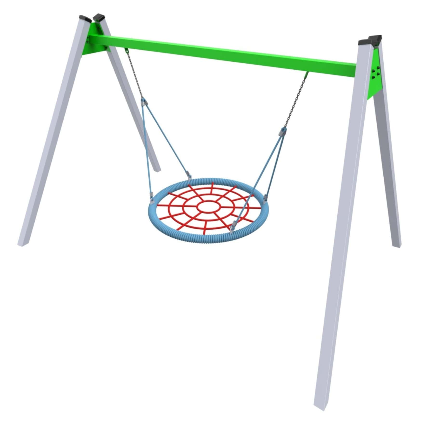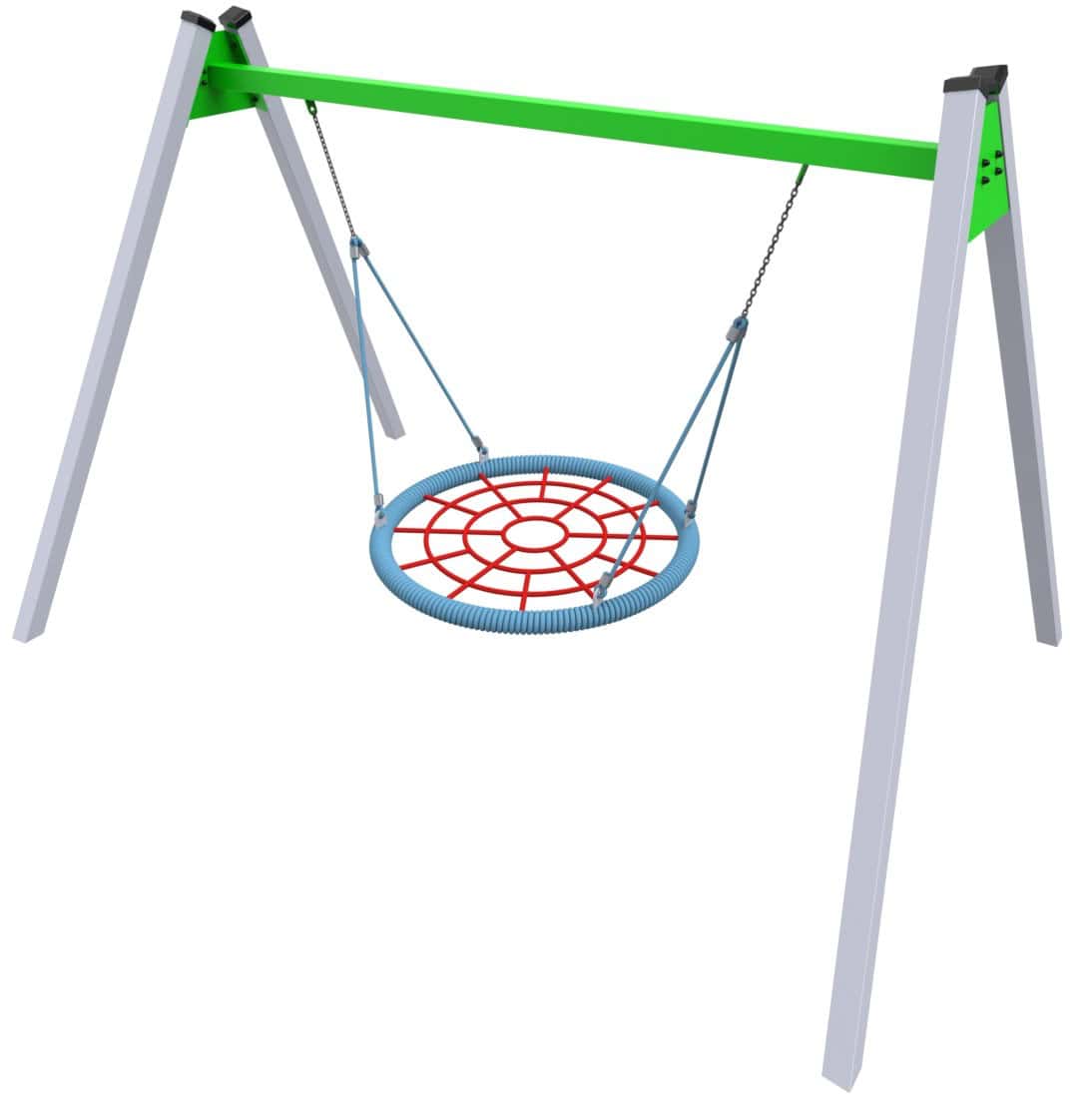 Huśtawka Bocianie Gniazdo HTR-03 to wytrzymała i bezpieczna huśtawka na plac zabaw, przeznaczona dla dzieci w wieku od 3 do 15 lat. Posiada duże, okrągłe siedzisko typu bocianie gniazdo, które umożliwia zabawę w pojedynkę lub w grupie. Wykonana z profili stalowych ocynkowanych ogniowo i malowanych proszkowo, jest odporna na warunki atmosferyczne. Spełnia normy bezpieczeństwa PN-EN 1176.