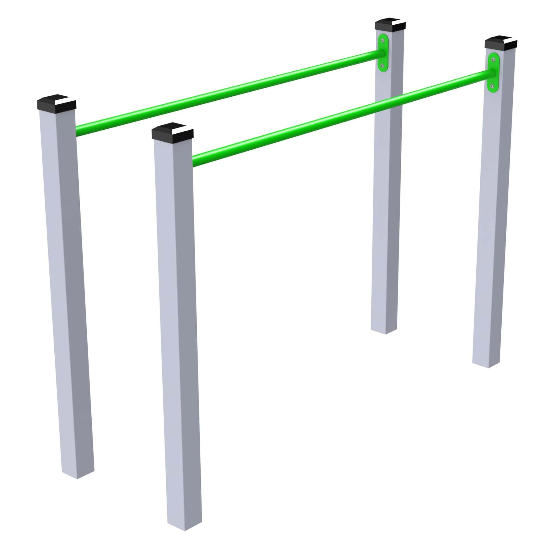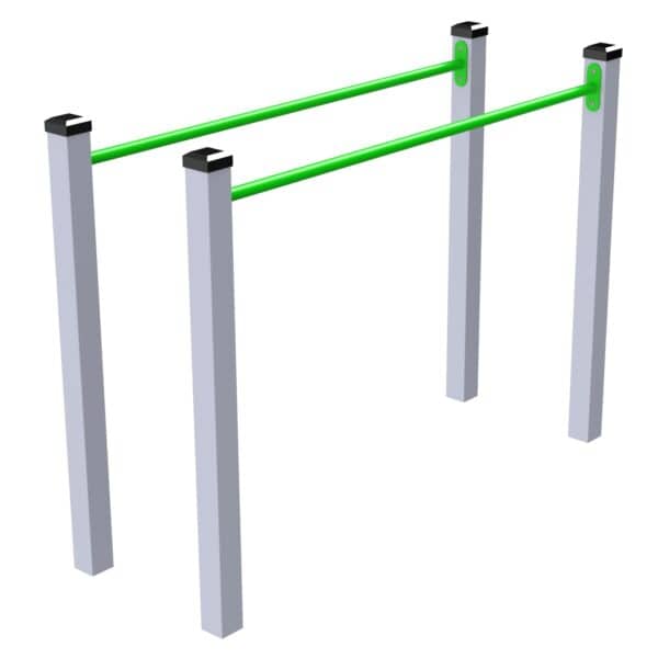Na zestaw składają się dwa drążki zamontowane na wysokości 120 cm, co umożliwia różnorodne ćwiczenia i zabawy gimnastyczne. Prosta konstrukcja wykonana z profili stalowych gwarantuje trwałość, bezpieczeństwo oraz odporność na intensywne użytkowanie i warunki atmosferyczne.