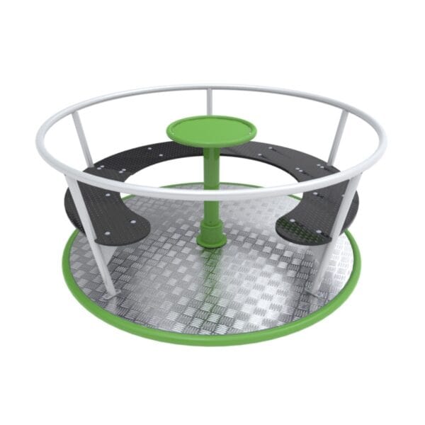 Kompaktowe wymiary karuzeli sprawiają, że doskonale nadaje się do placów zabaw o mniejszej powierzchni, a estetyczne wykończenie i nowoczesny design przyciągają wzrok i zachęcają dzieci do aktywności. Karuzela została wykonana z trwałych materiałów: stali cynkowanej ogniowo i malowanej proszkowo, a opcjonalnie także ze stali nierdzewnej, co zapewnia długowieczność i odporność na warunki atmosferyczne oraz akty wandalizmu.